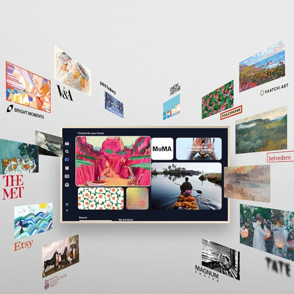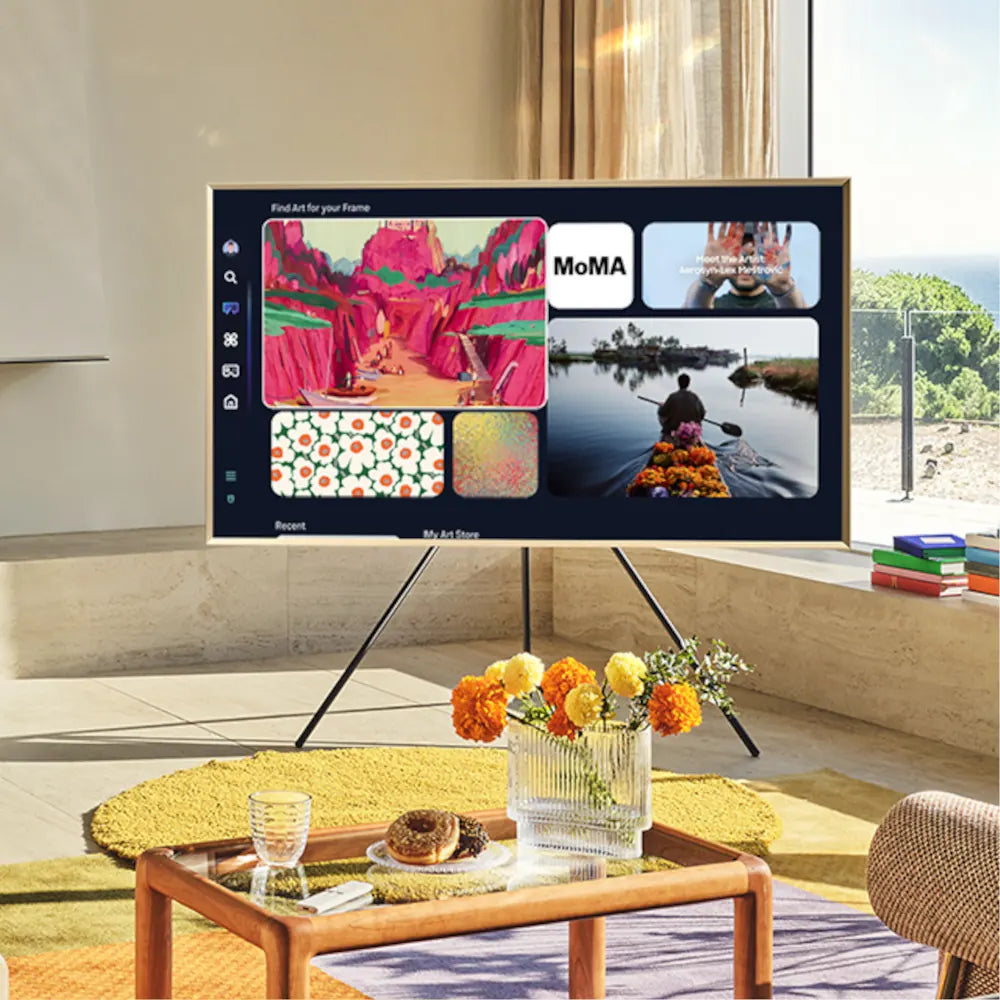 A 50” The Frame 4K Vision AI Smart TV egy modern, keretszerű kialakítású műalkotás, amely gyönyörűen illeszkedik az otthonodba. A matt képernyő és a QLED technológia lenyűgöző látványvilágot biztosít tükröződés nélkül. Élvezd az AI teljes erejét az NQ4 AI Gen2 Processzor segítségével, és alakítsd át a falat személyes galériává a Művészeti mód és a Samsung Art Store kínálatával!