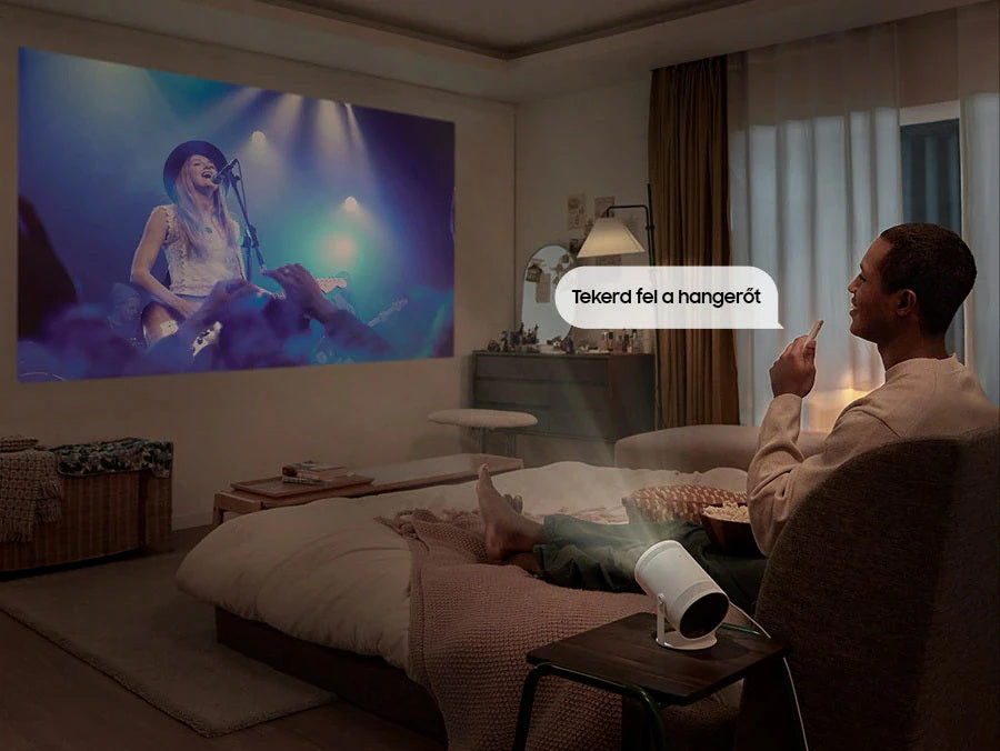 Kompakt, kerek kialakítás állvánnyal a sokoldalú vetítéshez. Egyszerűen helyezd el a The Freestyle-t, és az automatikusan korrigálja a képet a tökéletes vetítéshez, anélkül, hogy hozzá kellene nyúlnod.